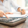 Administrator business man financial inspector and secretary making report, calculating balance. Internal Revenue Service checking document. Audit concept