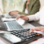 Business woman working teamwork process, Business team using a calculator to calculate the numbers of statistic business profits growth rate on documents graph data, his desk in a office.