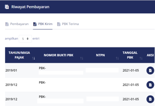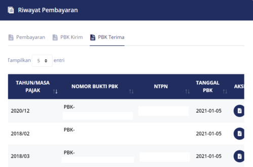 Terdapat 3 jenis pembaharuan yang disajikan, yaitu pembayaran Modul Penerimaan Negara (MPN), pemindahbukuan kirim, dan pemindahbukuan terima. Bagian Pembayaran MPN akan muncul seluruh pembayaran pajak yang dilakukan oleh wajib pajak dengan menggunakan Surat Setoran Pajak (SSP) atau kode billing.