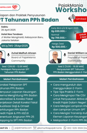 PajakMania Workshop 25 Oktober 2025 – Persiapan Pengisian SPT Tahunan PPh Badan & Belajar Isu Penting Terkait Pelaporan SPT Tahunan Pada Era Coretax