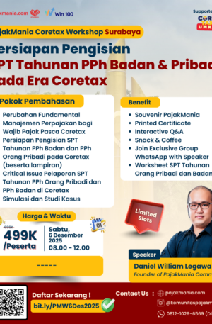 PajakMania Workshop 6 Desember 2025 – Persiapan Pengisian SPT Tahunan PPh Badan & Pribadi Pada Era Coretax